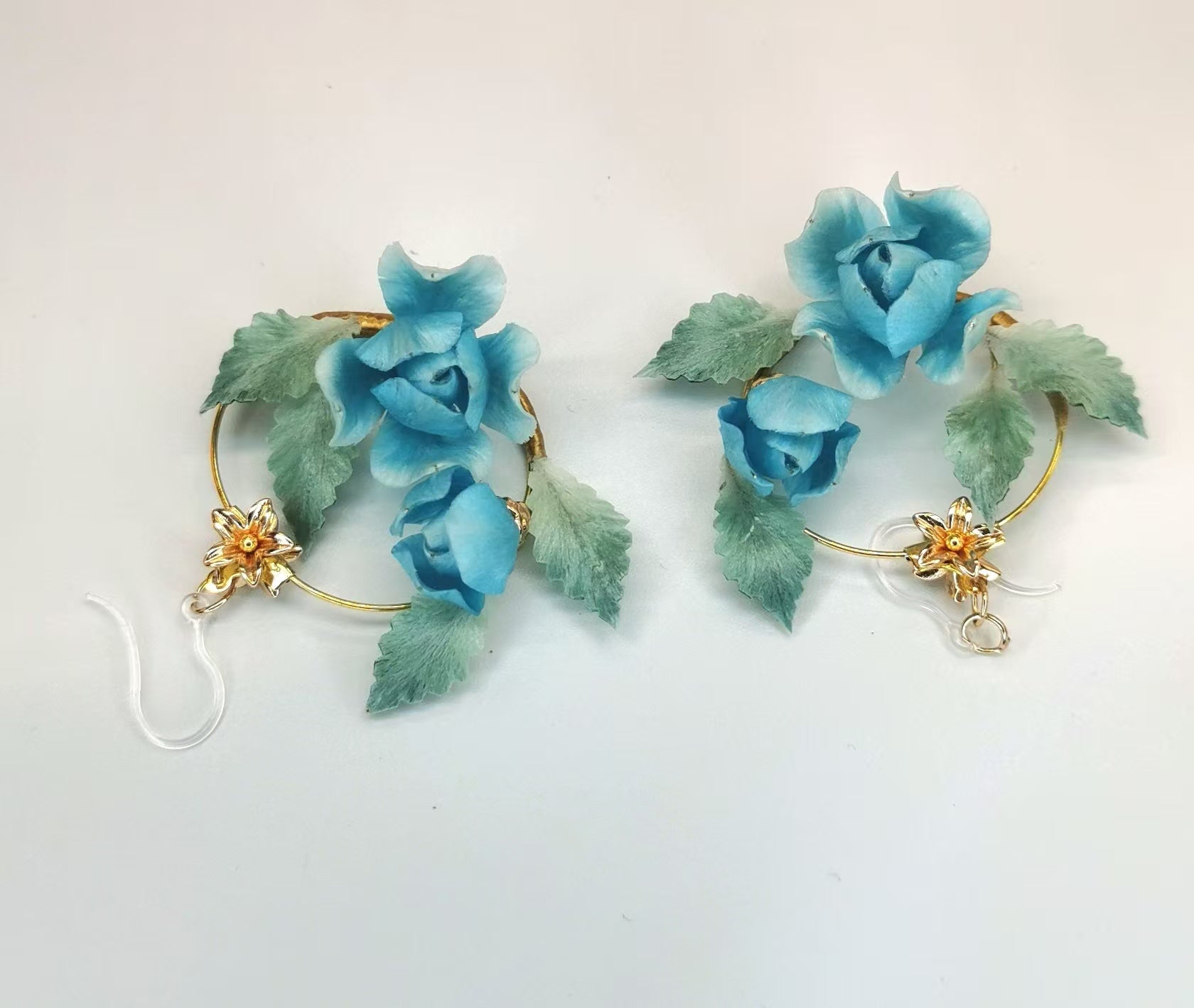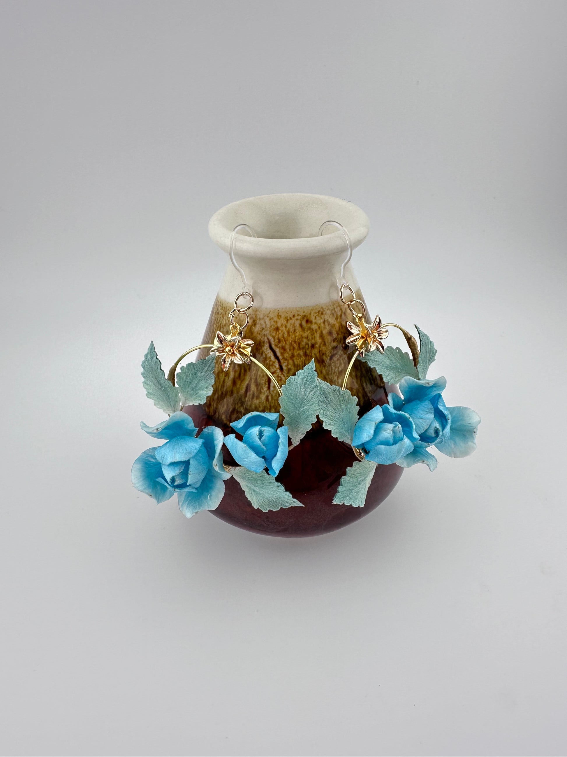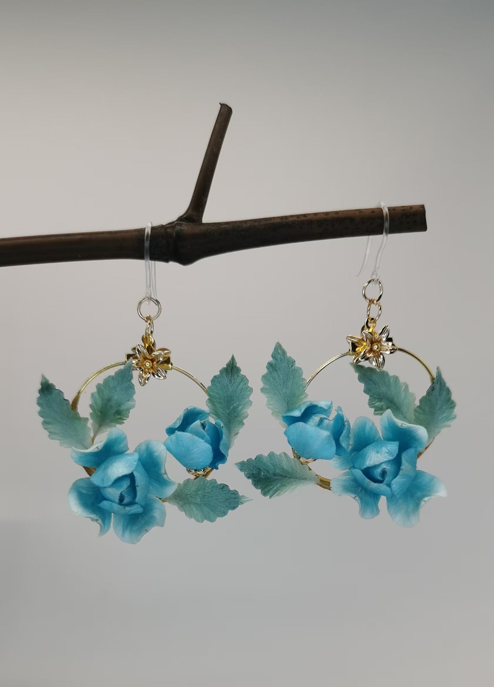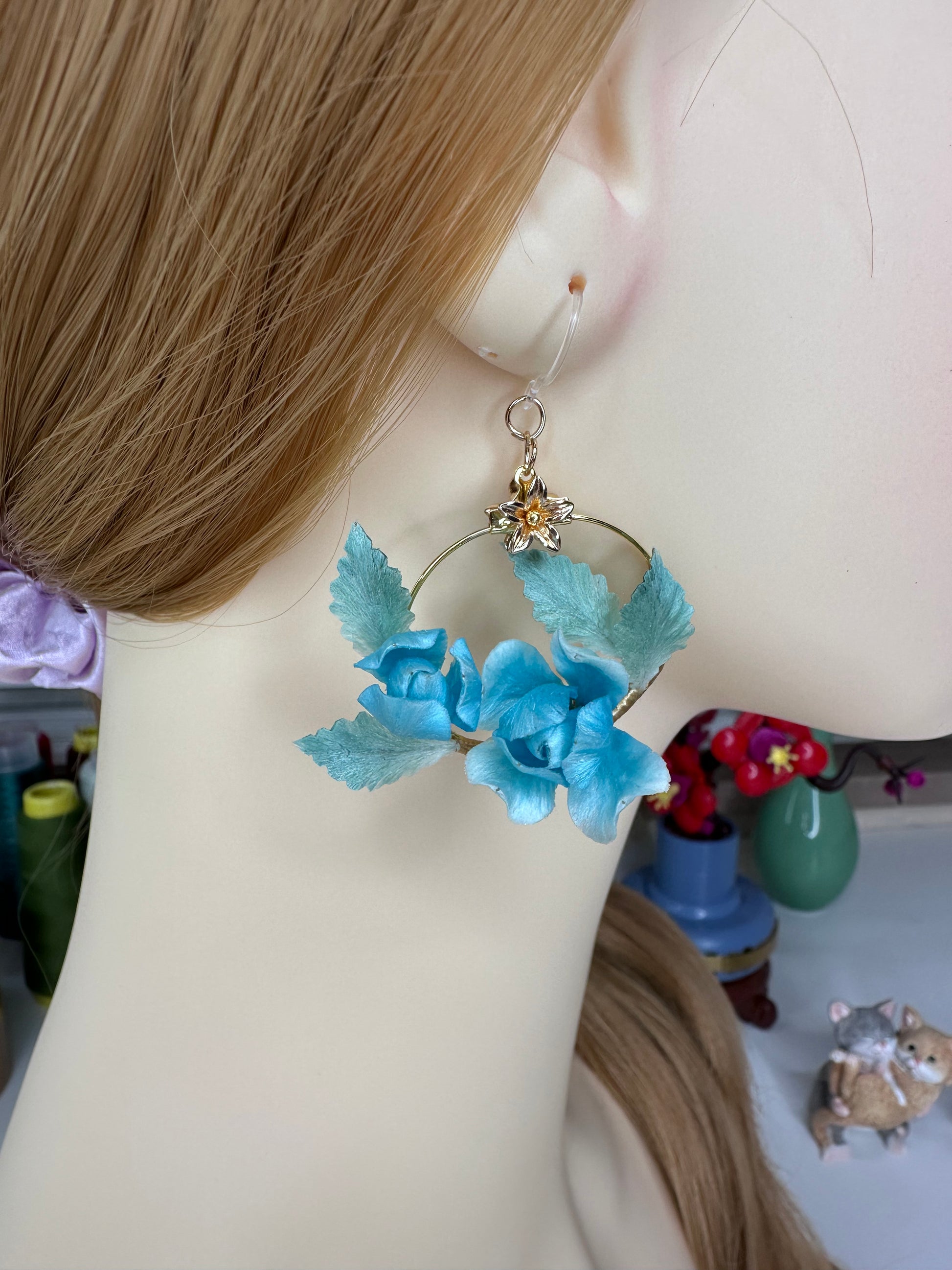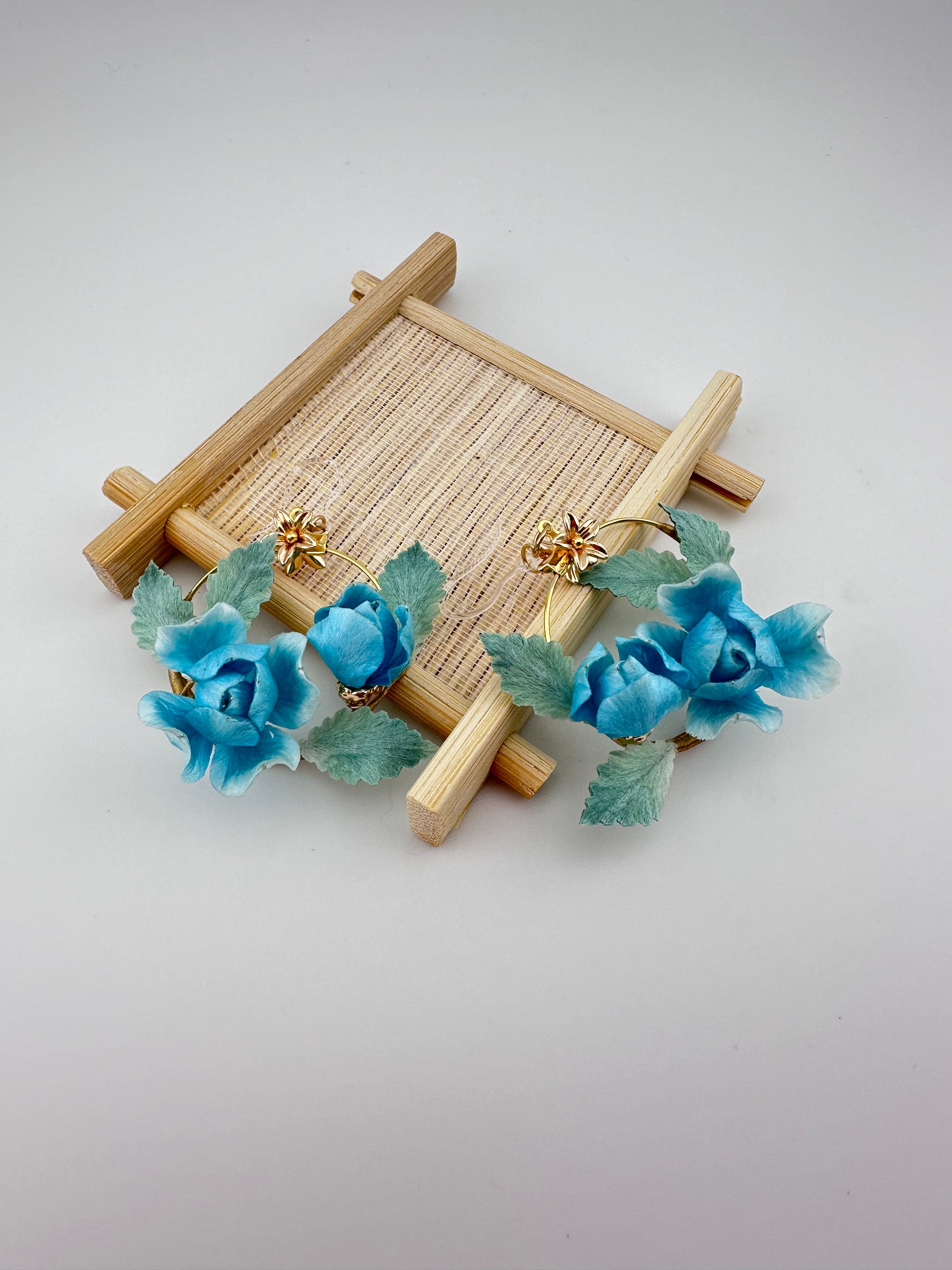 Blue rose earrings mulberry silk velvet flower currently available