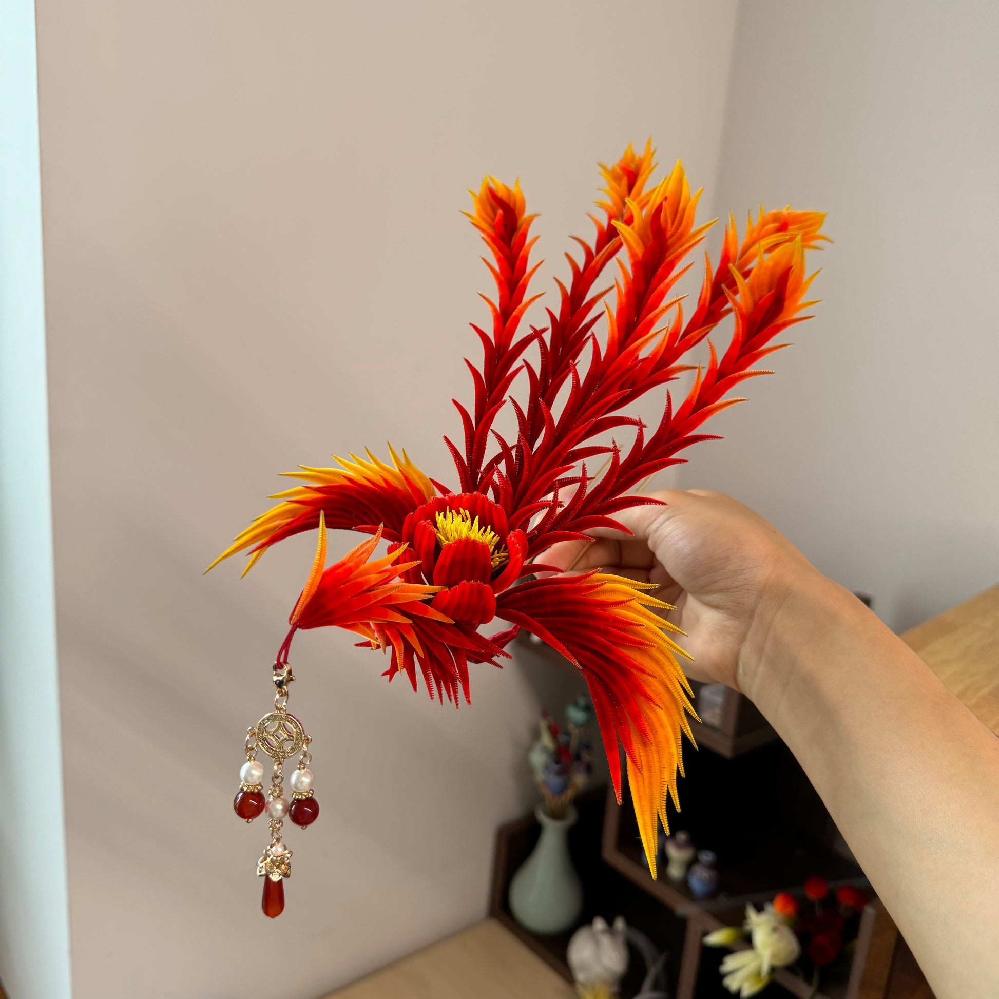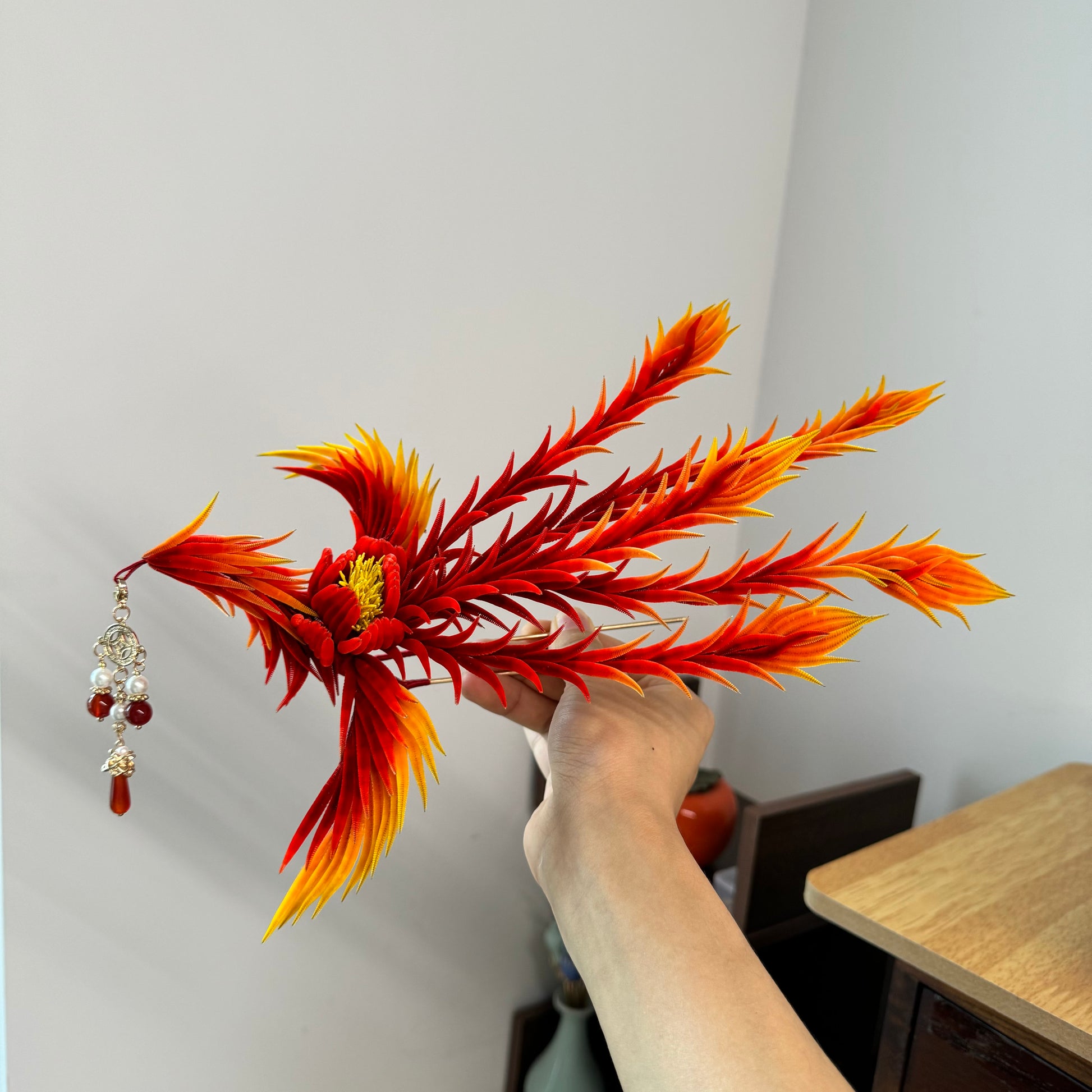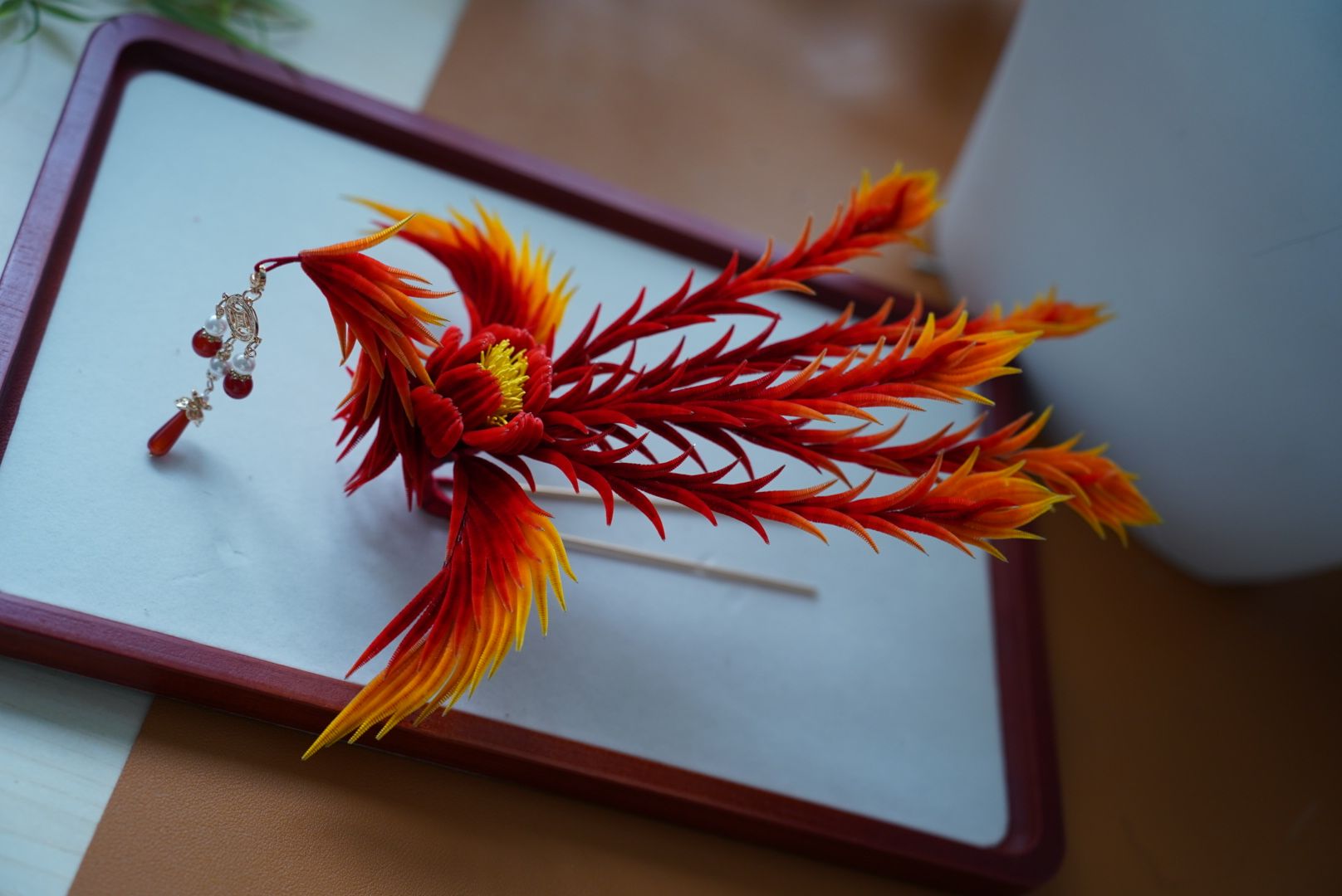 Fire phoenix mulberry silk hairpin pre-order