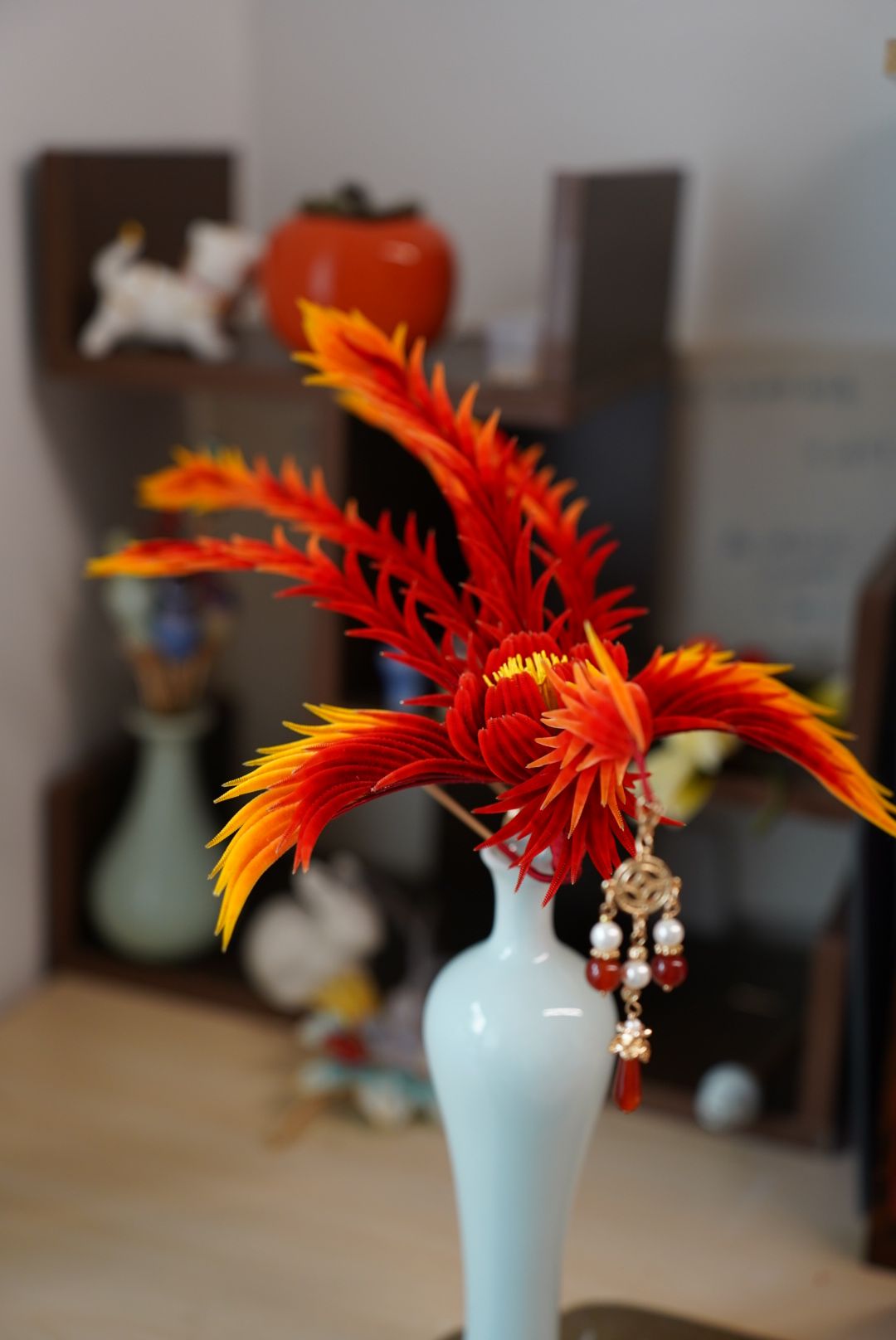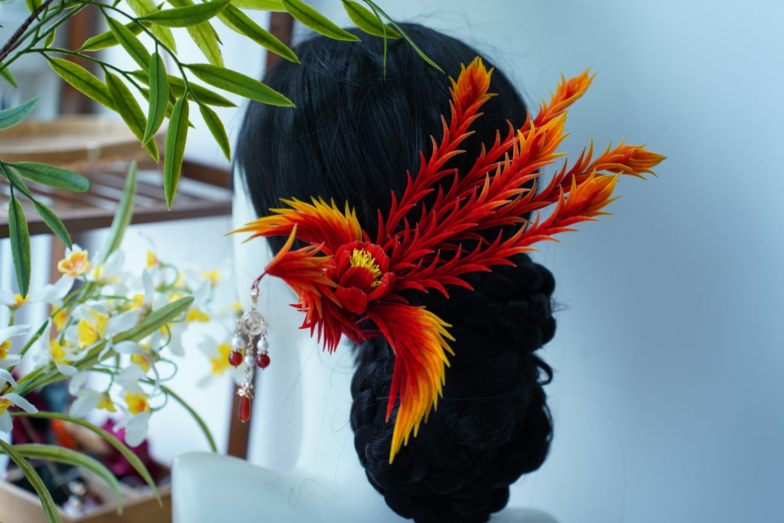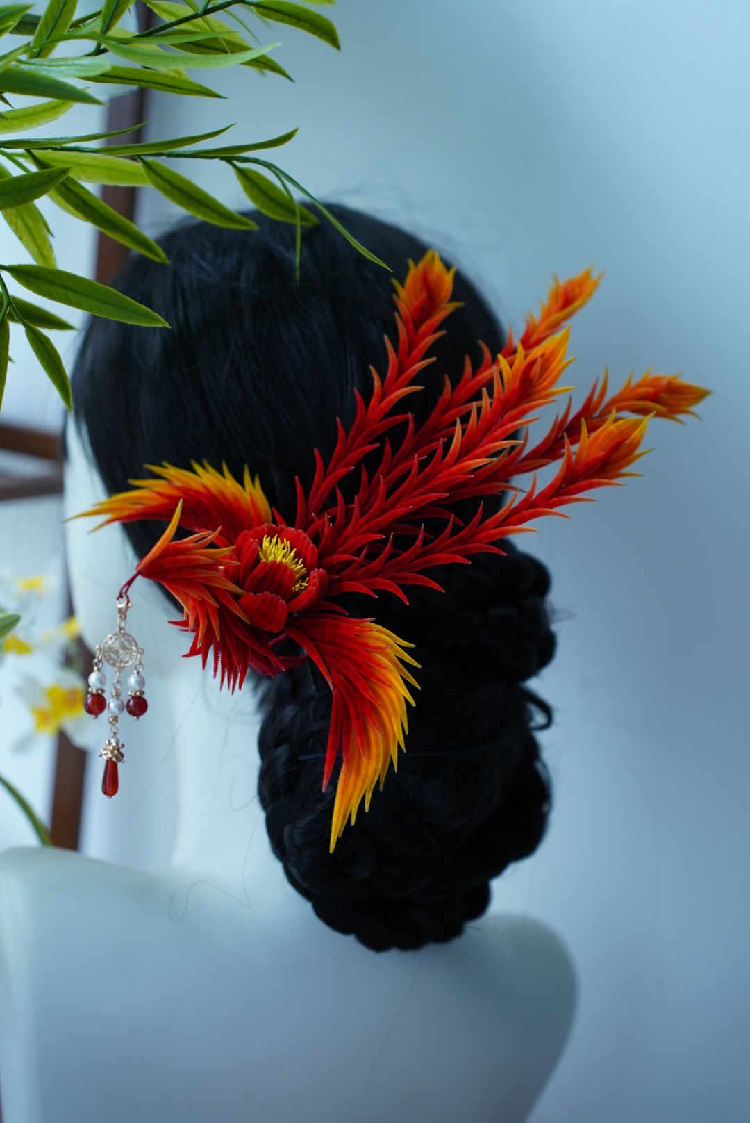 Fire phoenix mulberry silk hairpin pre-order