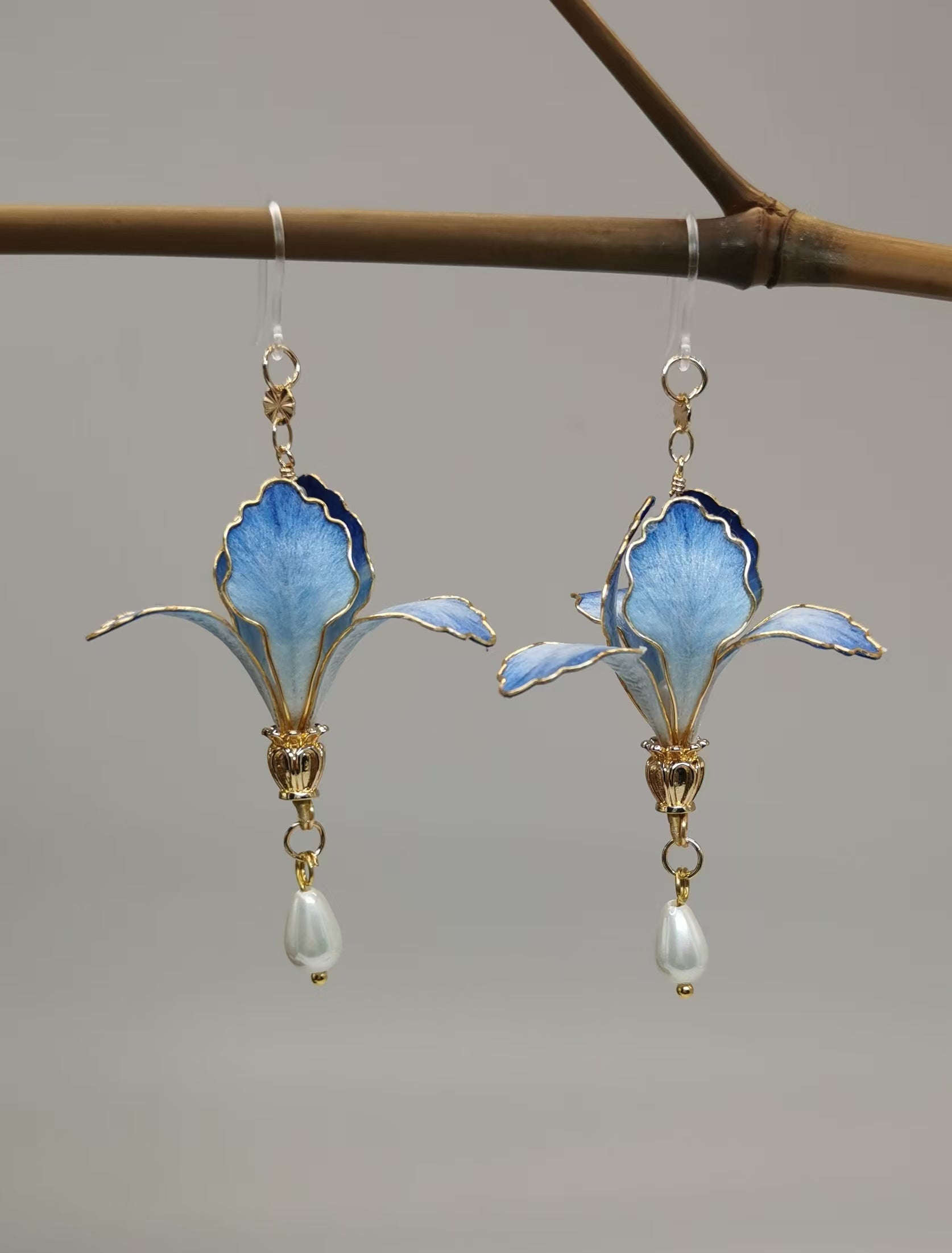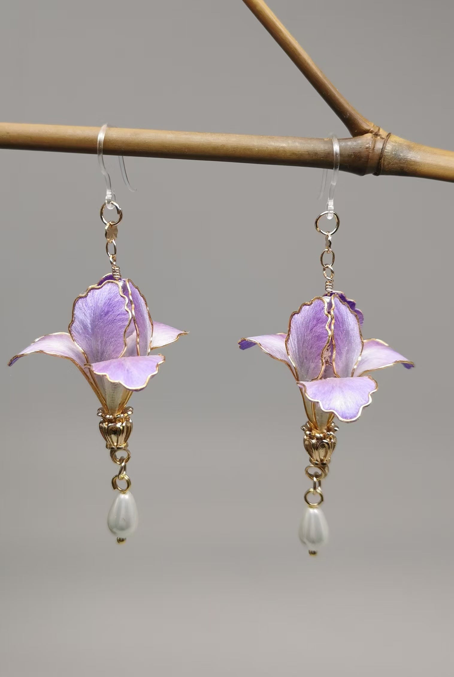Iris flower earrings mulberry silk velvet flower currently availabe