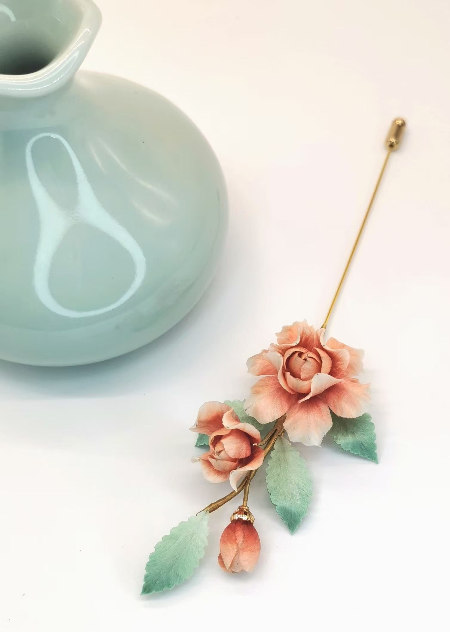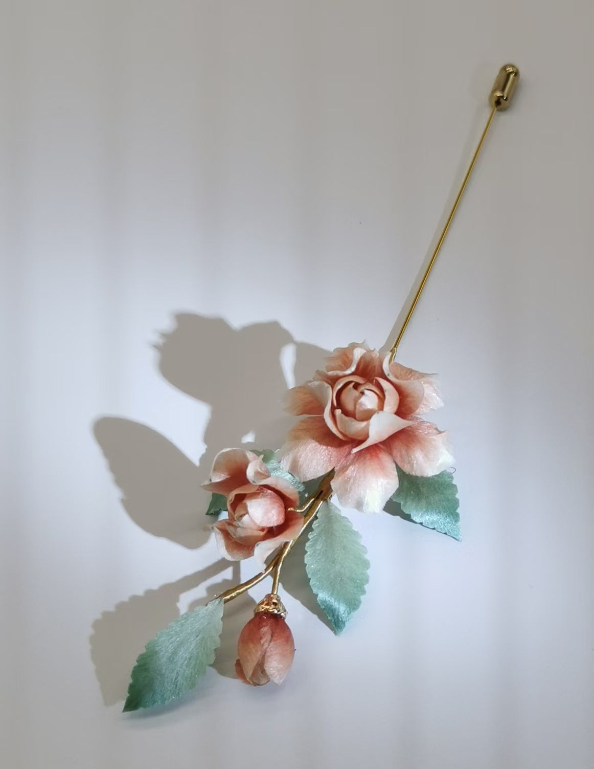 Pink rose brooch mulberry silk velvet flower currently available
