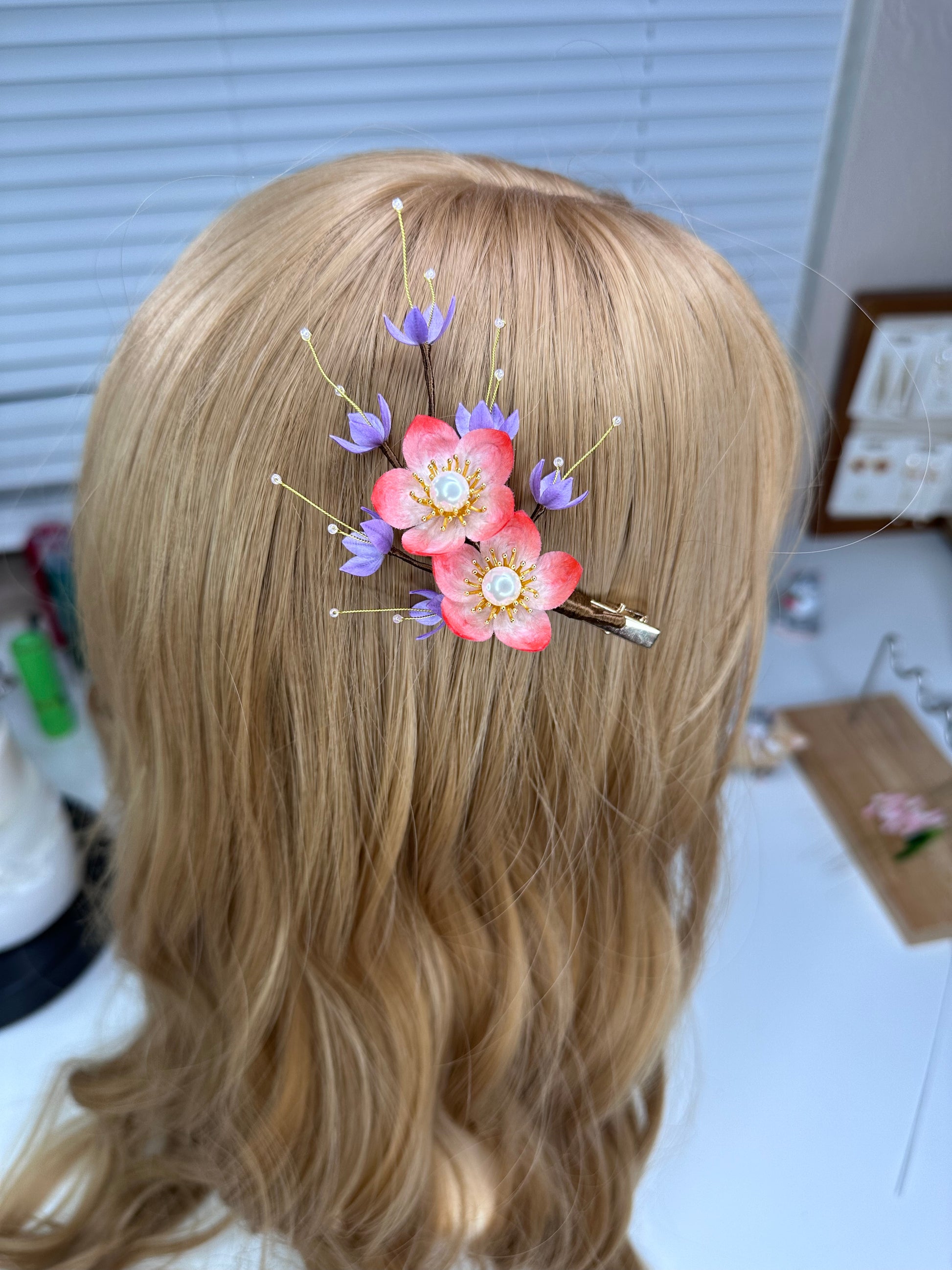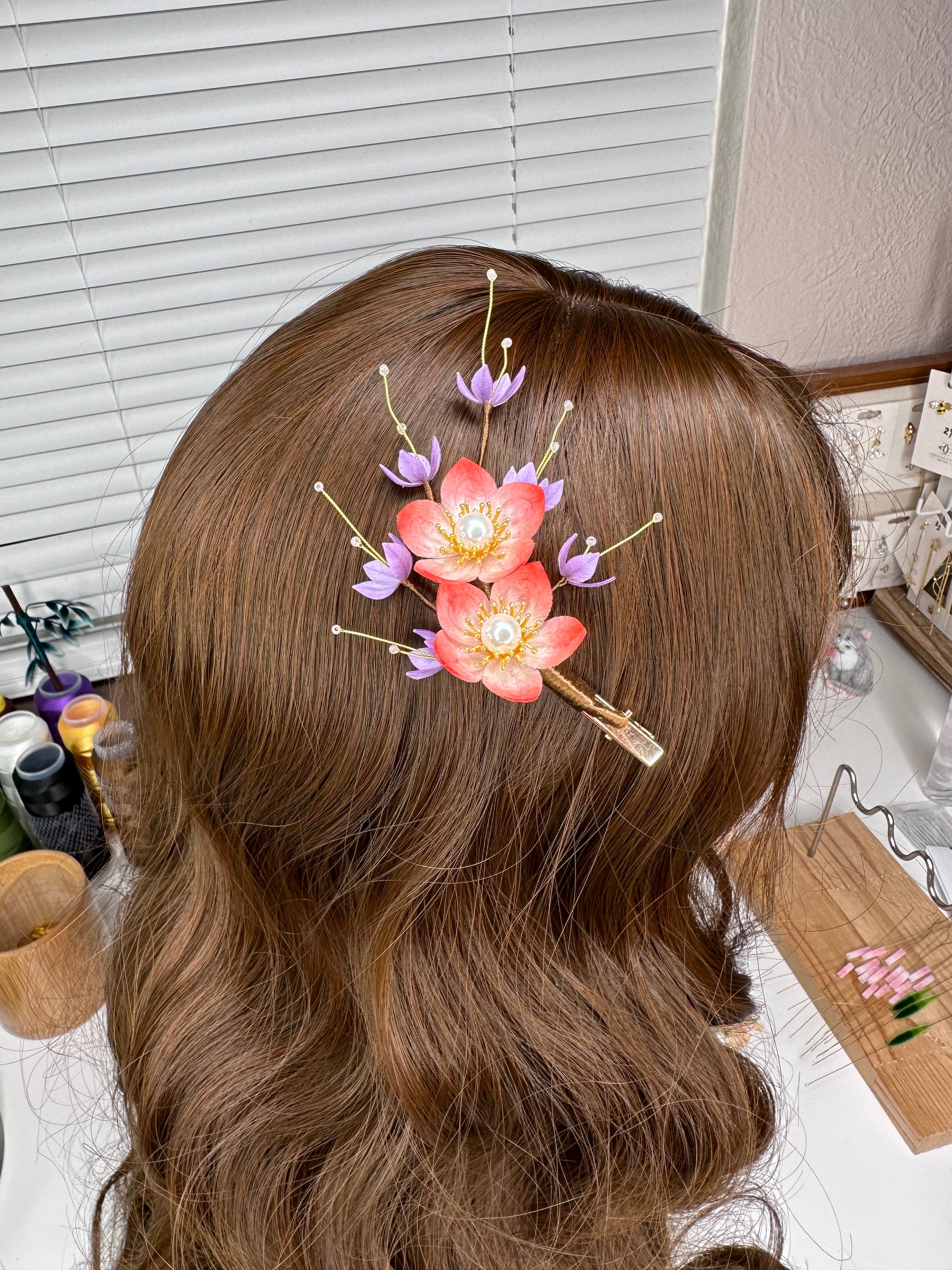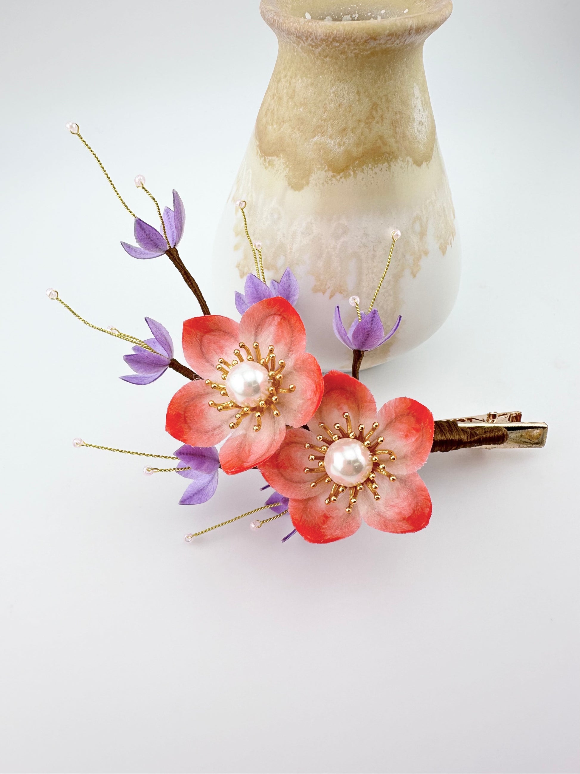 CHERRY BLOSSOMS hairpin mulberry silk flower velvet flower hairpin pre-order