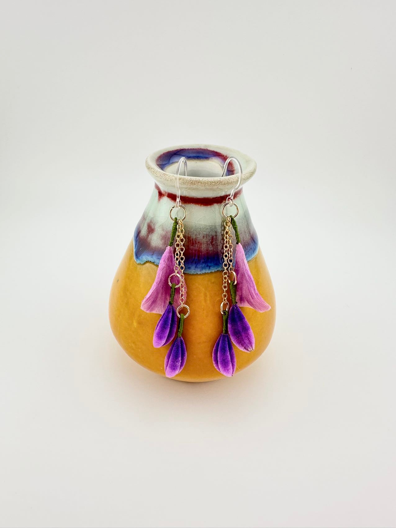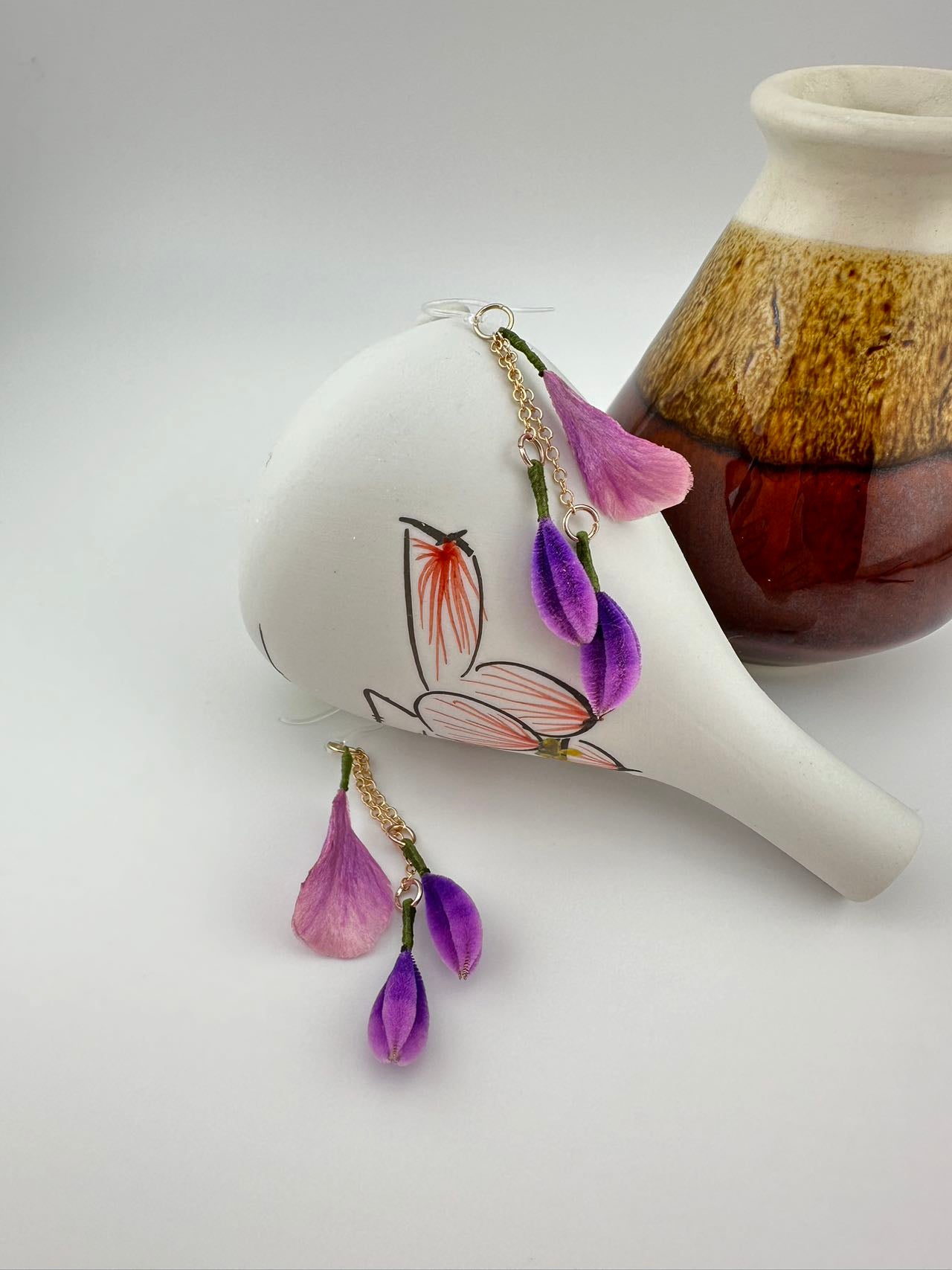 Wisteria earrings mulberry silk velvet flower Pre-order